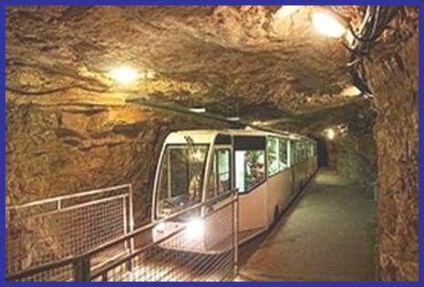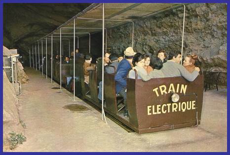 la grotte de Jouclas par un petit train électrique souterrain aux salles et