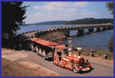 Le petit train sur l'île de Vassivière et traversant le pont