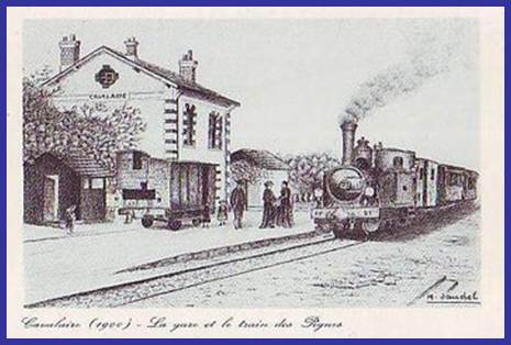 Perreard et illustration par M.Jaudel du train des Pignes en gare de "