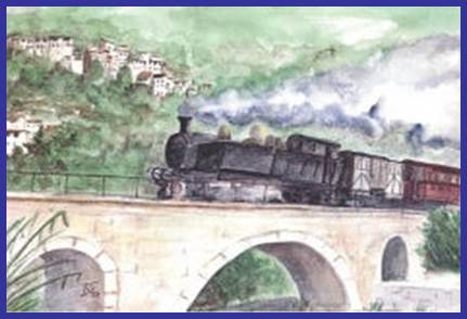 Aquarelle du train des Pignes par Philippe