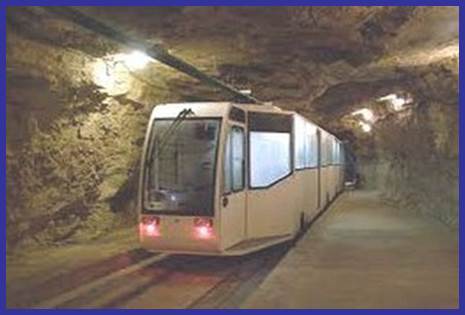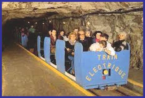 la grotte de Jouclas par un petit train électrique souterrain aux salles et